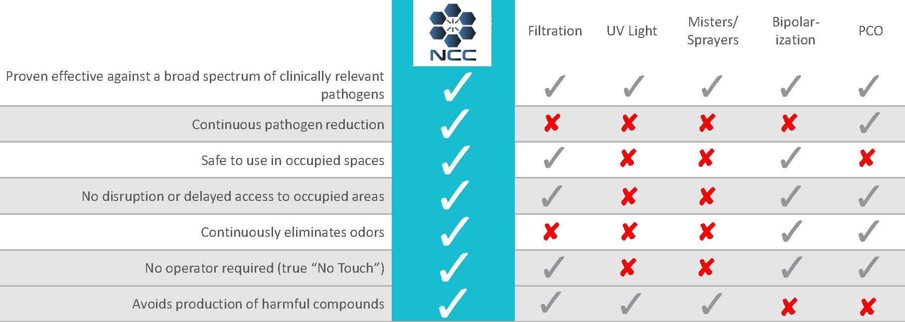 The CASPR technology has a kill rate of up to 99.96% on surfaces. It is effective against mold, viruses, bacteria, odors, and VOCs. The technology produces no residues, noises, or odors. It is easy to install and requires low maintenance.